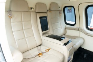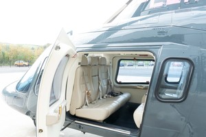 This A109E PowerElite is fitted with a range of practical enhancements, including auxiliary fuel tanks for extended range and a baggage compartment extension for increased storage capacity. It features a retractable landing light and searchlight for improved visibility during operations, along with a Traffic Advisory System (TAS) for enhanced situational awareness. Additional conveniences include a passenger step for easy cabin access and float provisions for added safety.