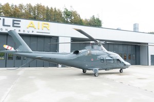 The aircraft features a metallic grey colour scheme, giving it a striking, modern appearance. It is equipped with an extended-range auxiliary fuel tanks for increased endurance and operational flexibility, and a retractable landing light to enhance visibility and safety during night or low-light operations.