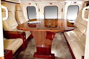 VIP Executive seven (7) passenger interior with additional seats for 8 or 9 pax option and optional conference table. Features four (4) aft facing seats and three (3) forward facing seats.