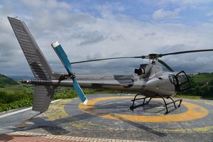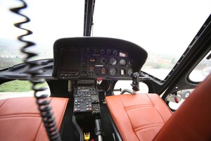 the Airbus AS350B is known for its high-altitude capabilities with a service ceiling of 15,100 ft. In order to comply with Europe's noise regulations, this rotorcraft is designed with an impressively quiet cabin. Its interior is usually climate-controlled for high altitudes and seats 4-6 passengers in a bench-style configuration, perfect for tours and passenger transport missions. The AS350B can reach speeds of up to 150 mph.