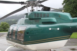 Exterior: Custom metallic green w/ gold stripes and white belly