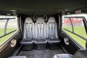 2020 VVIP INTERIOR PRESENTED WITH BLACK LEATHER SEATS WITH BURGUNDY STITCHING (BASED ON LAMBORGHINI URUS STYLING). THE ROOF LINING IS PRESENTED IN BLACK ALCANTARA. THE INTERIOR PANELS ARE PRESENTED IN BLACK LEATHER WITH BURGUNDY STITCHING. THE CARPETS ARE PRESENTED IN BLACK LUXURY WOOL WITH BACK LEATHER EDGING.