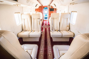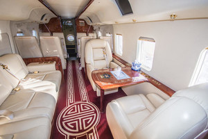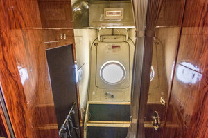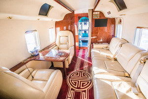 All seats in Cream leather with Gold plate accessories. High gloss wood veneer cabinetry.