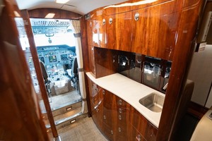 The Executive 9 (nine) passenger interior features six seats in a club configuration plus 2 (two) side facing seats opposite of a 3 (three) place divan.