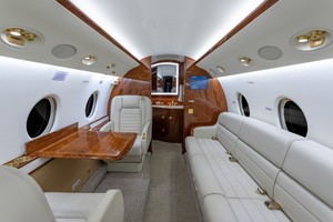This beautiful nine passenger cabin features: a four-club seat configuration with two-fold out tables in the forward cabin. The aft cabin features a right three-place divan, across from two club seats with fold-out side table. Aft lavatory which is serviced externally.