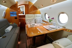 Highly desirable 10 passenger configuration with a 4 place club in the forward cabin, 4 place conference group in the aft cabin across from a 2 place divan.