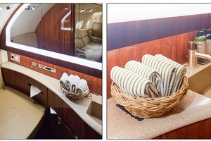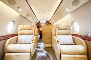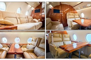 Forward Cabin: Four (4) place executive club seat configuration with pull-out tables.