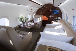 Beautiful nine (9) passenger cabin featuring a 4-place club seat configuration with two fold out tables in the forward cabin. The aft cabin features a three-place divan opposite a two-place club. A cockpit jump seat, forward galley, and aft lavatory complete this interior.