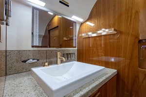 This luxurious thirteen (13) passenger floor plan features a three-zone cabin with a forward galley, right hand crew rest, left hand crew lavatory (full size), electric window shades, aft passenger lavatory, and an in-flight accessible baggage bay.