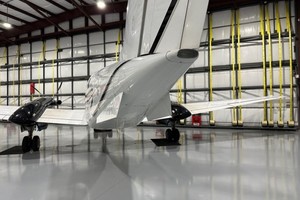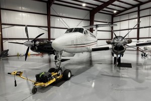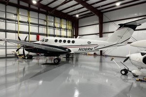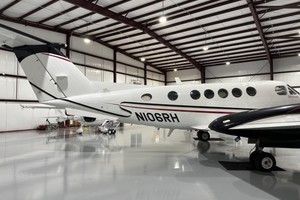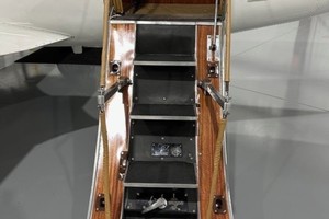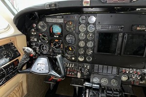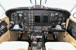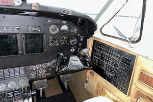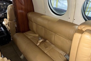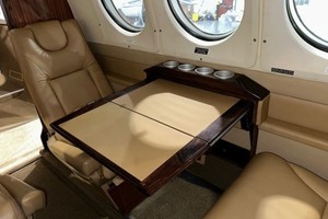 | (7/2019) Eight passenger executive interior features a forward two-place bench seat opposite galley and single aft-facing club seat, followed by four place club setting, and aft side-facing potty seat behind sliding partitions. |