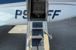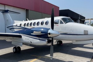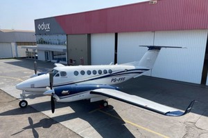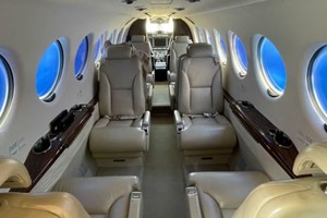 | This King Air 350 offers a spacious cabin accommodating up to nine (9) passengers and two (2) pilots. The interior is Light Beige leather and carpet, Dark woodwork, and Light Grey headliner and side walls. |