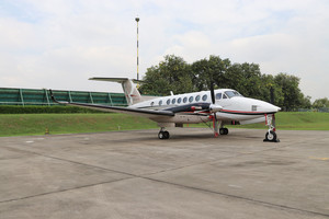 The Aircraft is Finished in Akzo Nobel Matterhorn White over Nevada Tan, Accented by Platinum Metallic and Toreador Red Striping, with Black Engine Nacelles and Winglets