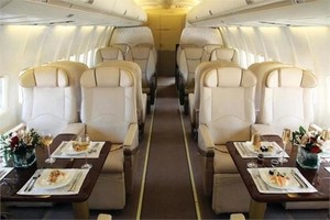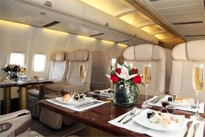 INTERIOR: One stateroom with private lav 62 club class seats with 110v 4 fight deck seating 7 cabin attendant seats 4 lavs 239 total seats