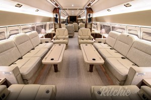 Seating Forward Lounge with Four Individual Club Seats and Dual Aisle-Facing Sofas/Divan,