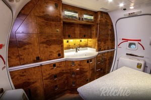 Lavatories Private VIP Aft Lavatory with Shower and Forward Airline Style Crew Lavatory.