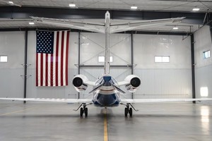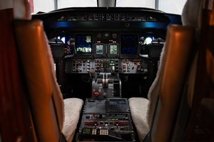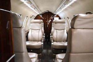 Fireblocked seven (7) passenger interior featuring six (6) executive club seats with fold-out tables and an aft belted