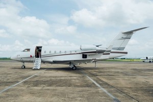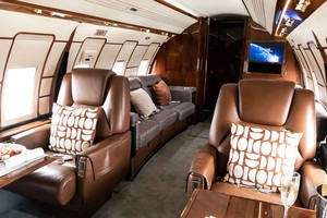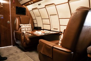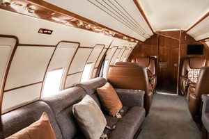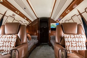 12-Passenger configuration with forward galley, four place double club, two 4-place divans, with conference/coffee table in center isle, aft cabin lavatory, Crew jump seat.