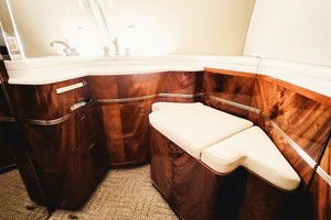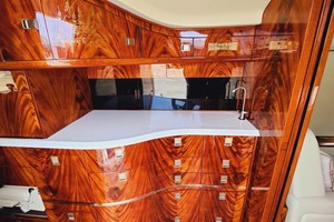 • Forward galley with high-gloss mahogany cabinetry