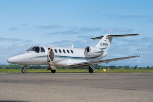Cabin renewed / refurbished 2023, Six (6) passenger executive seating in beige leather (four club seating, two single fwd facing seats), one side facing seat (7) plus belted lav seat (8), brown carpet, brown wood veneer, lavatory separated by a sliding door for privacy, small refreshment center (hot Cup), brushed aluminium hardware, 115 V AC Cabin and Cockpit power outlets