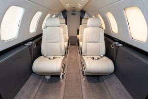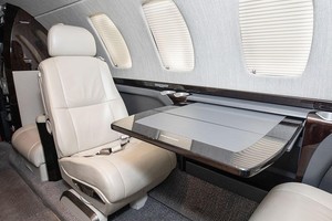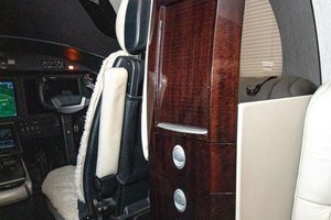 Excellent Condition September 2016 Interior with 7 1 Seating: Full RH-Fwd Side-Facing TTOL Seat Opposite Entry Door, Center Cabin Double Club with Executive Tables, 2 Aft Fwd-Facing Seats with Executive Tables, and Side-Ledge Drink Holders Throughout. Bright Interior with Ivory Seat Leathers, Long-Grain Fabric Light Grey PSU and Upper Sidewalls, Salt and Pepper Carpet with Deep, Rich Mahogany Woodwork, and Satin-Finish Hardware. RH-Fwd Refreshment Center.