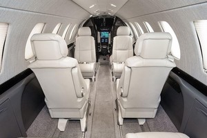 Cabin has Pleated Window Shades, Crew and Cabin USB Ports, and a cabin 110VAC Outlet. Aft External Storage and Belted Lav with Privacy Pocket Door.