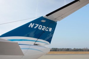 September 2016 Paint – Overall Matterhorn White with Thin Three-Tone Blue Accents on Fuselage with Solid Sky-Blue Tail