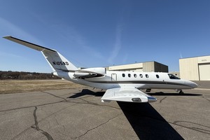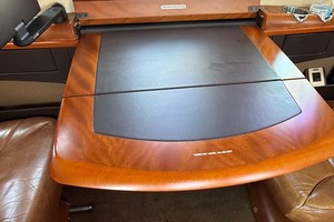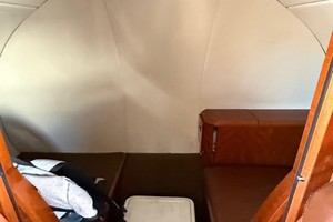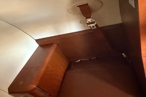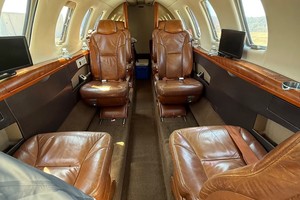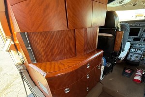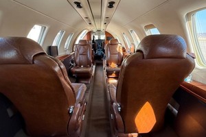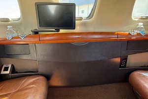 Executive 9 Passenger configuration. Featuring forward 2-place divan across from entry door, 4-place club in the forward cabin, and two forward-facing seats in the aft cabin. Enclosed flushing belted lavatory in the rear.