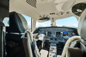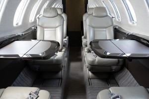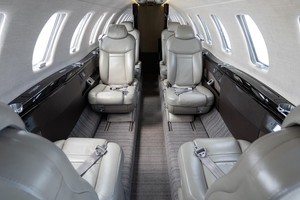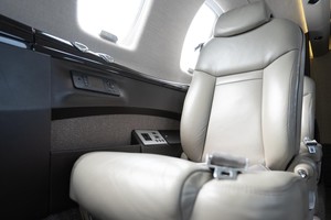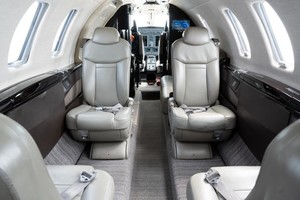 Executive 8 Passenger configuration. Featuring upgraded 2 place divan across from entry door, 3-place club in the forward cabin, and two forward-facing seats in the aft cabin. Enclosed flushing lavatory in the rear. (2022 refurbished)