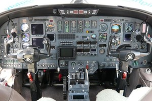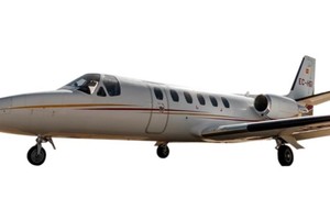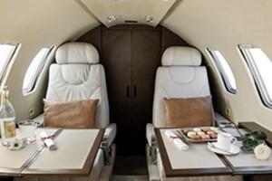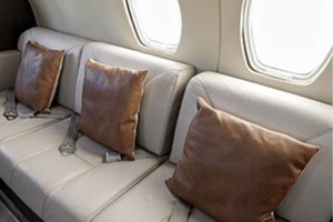 This 8 passenger Citation II contains a 4-place club configuration with a forward 3-place divan and a belted lav.