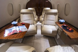 Seating for Nine (9) Passengers in a Center Club Configuration, with a RH Forward side facing two place couch and Two (2) Aft forward-facing seats.