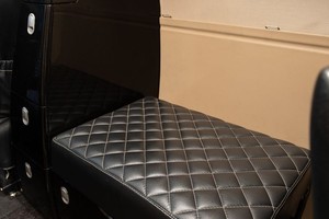 • Black Leather Seats with Diamond Stitches Accented with High Gloss Black Cabinets and Carbon Fiber Accents.