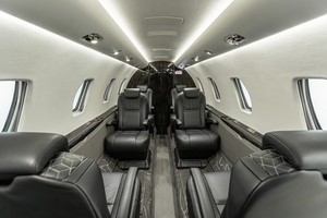Complete refurbishment in 2024 by Elliott Aviation. 4-Place forward club seats, dual aft forward facing seats, forward side facing