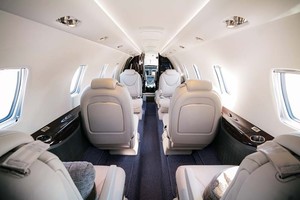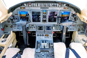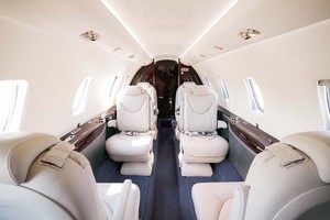 Notes: Light gray leather seats with color coordinated sidewalls and headliner. The cabin also includes three 110V outlets, wood veneer cabinetry, and a Rosenview LX moving map system with a 10.4” monitor display in the RH fwd cabinet.