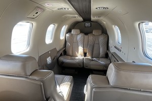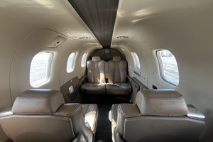 Interior Color Palette: Light Brown Lower Sidewall Carpet, and Leather Seats. Light Sand upper Sidewall and Overhead. Brushed Stainless Metal Finishes. Built-in Executive Writing Table. All positions have Air-Conditioning Outlets, Reading Lamps and Headset Jacks.