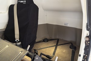 | Premium Beige Gray leather seats with accent blue stitching. Matching Beige Gray lower side panel. White Sand upper panel, Walnut headline and Sapelli Matt tablet finish. Polished chrome vents and light fittings. # of Seats: 6. |