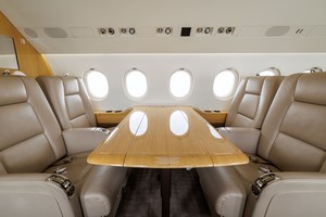 This beautiful eight (8) passenger interior features a four-place club arrangement in the forward cabin, followed by a four-place conference group with an oversized table opposite a credenza.