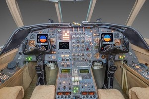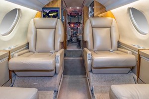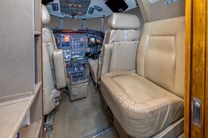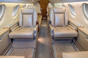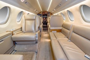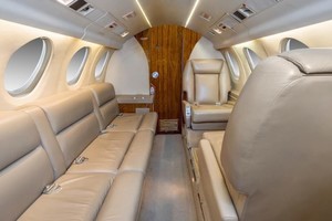 Executive interior features Airshow 400, forward refreshment and rear lab. Configured with forward four place club setting, followed by aft three-place divan opposite two place club setting. Cockpit jump seat and belted lavatory seat for a total of eleven (11) passengers plus crew.