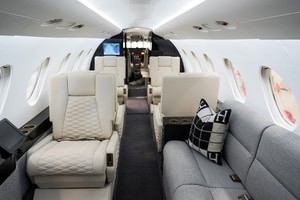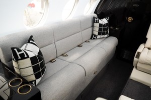 Completely refurbished and updated in 2023 by Icon Aviation Solutions, with a new generation style interior including the latest, state of the art cabin systems. The nine-passenger interior includes a four-place club group in the forward section of the cabin and a three-place divan opposite a two-place grouping in the aft cabin. A full-service forward galley and aft lavatory complete the executive interior. Cabin entertainment provided by a Baker cabin management system, an Alto Cabin Sound System, a 15” LCD FWD Monitor, a Honeywell Baker Multi-Disc Changer/DVD and 6 Rosen individual monitors. Our cabin lighting has been upgraded with new generation LED lights