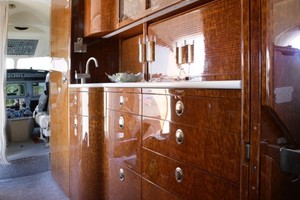 Cabinetry/Wood: Pommele eucalyptus veneer cabinetry, mid-cabin electric table