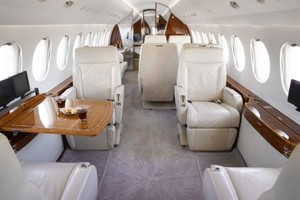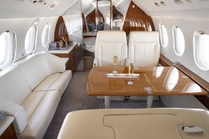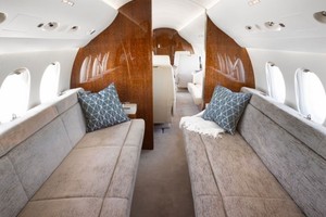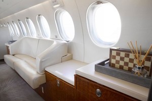 opposite 2-place settee, dual aft leather berthable divans, third DASC crew seat