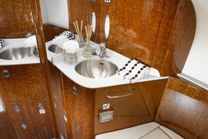 Refreshment: Forward galley w/Nespresso coffee machine, extra large high-temperature oven, microwave oven, pocket