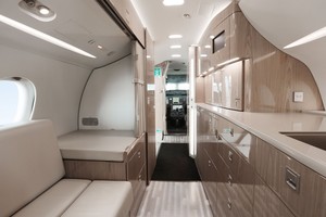 Misc: 2nd MED Handrail, Aft Lavatory Vacuum Toilets, Flight deck EASy Video Interface, 1ea. Video Camera (Vertical Fin Mount), Additional crew-type smoke hood, EVAS (Emergency Vision Assurance System), LSS-860 (Lightning Sensor), BF Goodrich Ice Detector, 230VAC/50Hz, 2000VA w/13 outlets, Telescoping tow bar, 2ea. 12-man Life Rafts.
