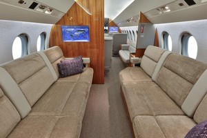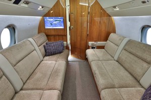 Executive fourteen (14) passenger interior features a forward four-place (4) club, midcabin
