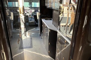 The well-appointed galley is equipped with a coffee maker, cold air chiller unit, microwave oven, high-temperature oven, and Thermos storage, ensuring full meal service capability for long-range missions.
