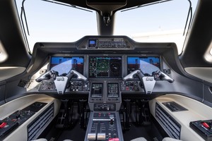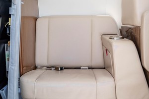 This elegant six (6) passenger interior features a four-place club (4) arrangement in the forward cabin, followed by a belted lav (1) in the aft cabin. The forward cabin includes a side-facing seat (1).