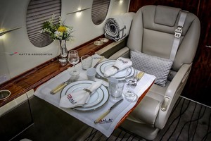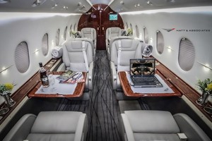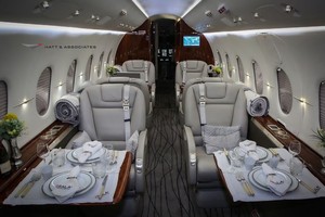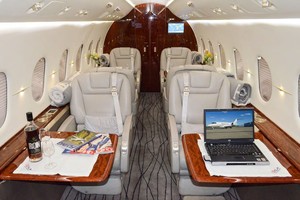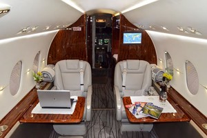 Entering the aircraft on the left hand side is a coat closed, directly across on the right hand side is the main galley. Main cabin is a four (4) place club followed by another four (4) place club seating arrangement that features fold out card tables.