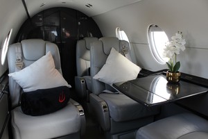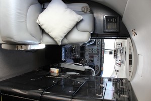 Refurbished 2023 Seating for 8 passengers. Forward cabin sports a rear facing, single seat across from the forward galley. Mid-cabin features a 4-place club configuration. Aft cabin has two forward facing seats and an enclosed, flushing, and belted lavatory. Woodwork throughout has been replaced with carbon fiber veneer and plated silver metalwork. Grey leather and cream headliner compliment the upgraded cabinetry throughout the cabin.