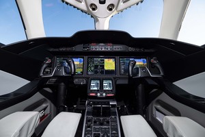 Garmin G3000 with three 14” displays, two touch screen controllers and synthetic vision