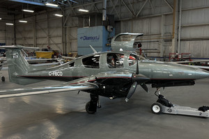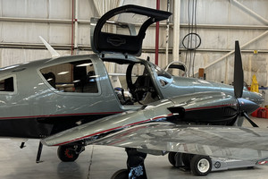 Diamond Premium âDashâ Scheme in Anthracite Carbon Gray over Black with Wild Cherry Accent Stripes with High Gloss Top Coat. Prop Blades are Black with Gray Tips and Black Prop Spinners