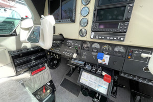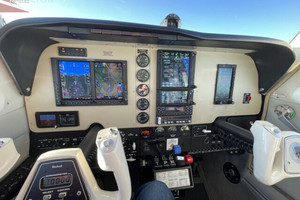 In later years, the aircraft received a significant avionics modernization including a Garmin glass cockpit upgrade with a Garmin G500 display system and GTN-series touchscreen navigators, providing modern navigation capability and enhanced situational awareness for cross-country and IFR operations.